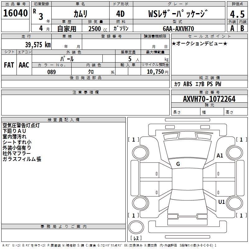TOYOTA CAMRY WS LEATHER PACKAGE - лот 16040