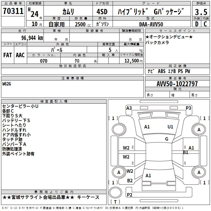 TOYOTA CAMRY HYBRID G PACKAGE - лот 70311