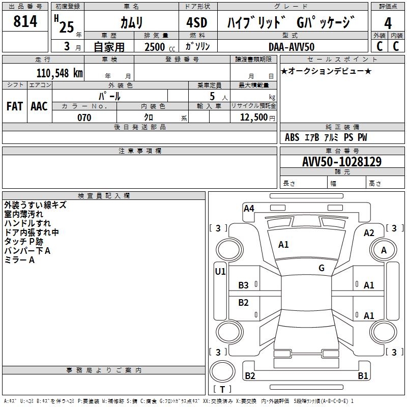 TOYOTA CAMRY HYBRID G PACKAGE - лот 814