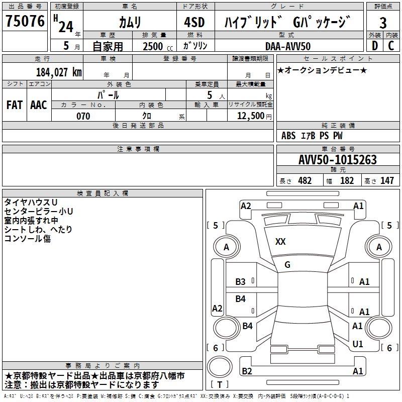 TOYOTA CAMRY HYBRID G PACKAGE - лот 75076