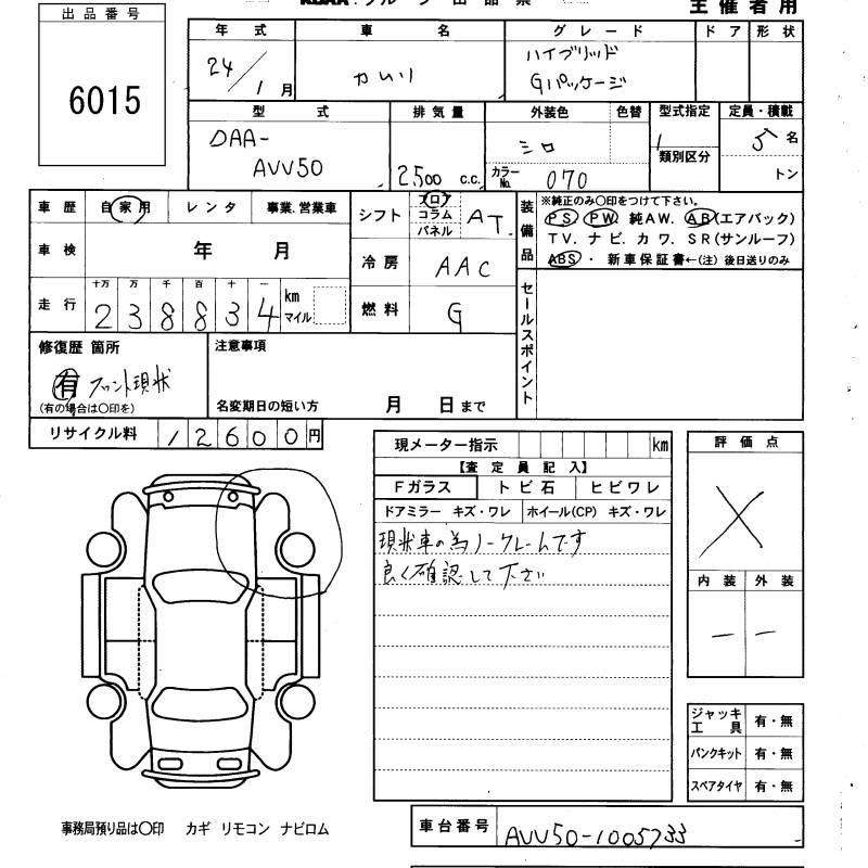 TOYOTA CAMRY HYBRID G PACKAGE - лот 6015