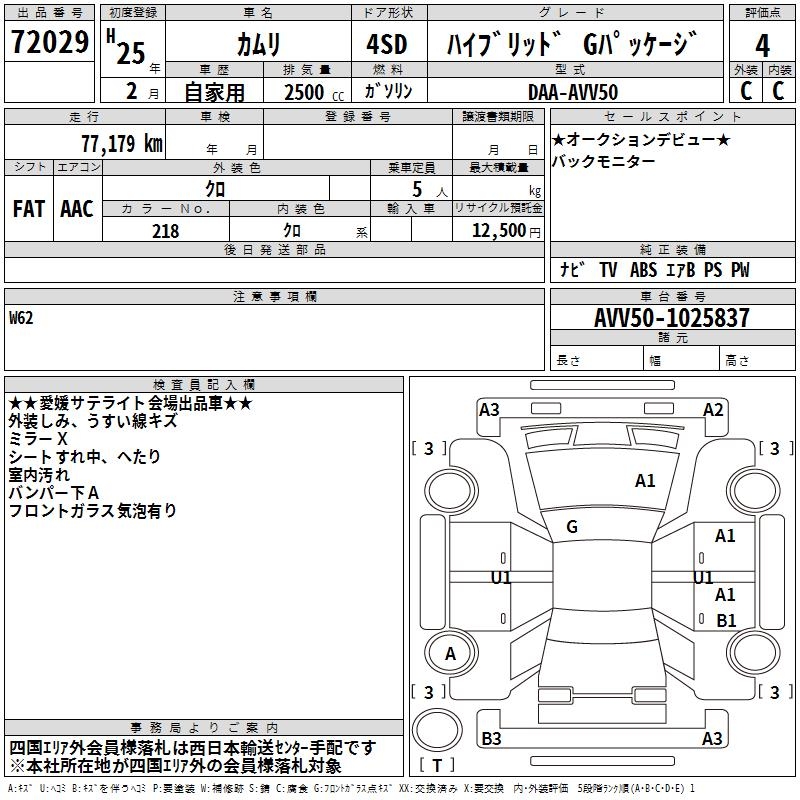 TOYOTA CAMRY HYBRID G PACKAGE - лот 72029