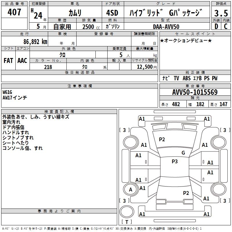 TOYOTA CAMRY HYBRID G PACKAGE - лот 407