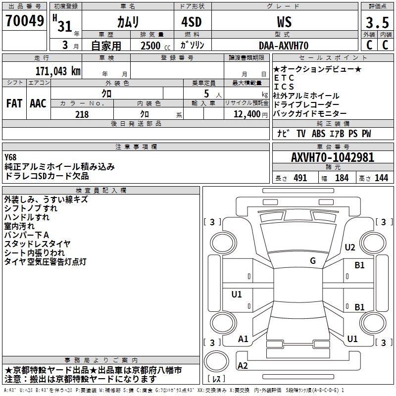 TOYOTA CAMRY WS - лот 70049