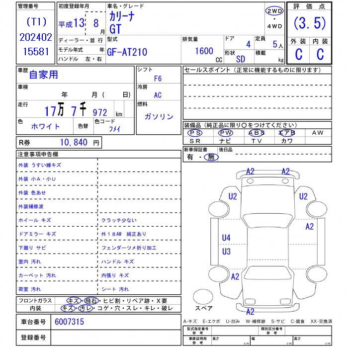 TOYOTA CARINA - лот 9519