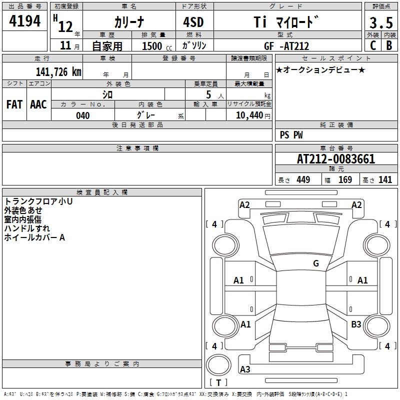 TOYOTA CARINA TI MY ROAD - лот 4194