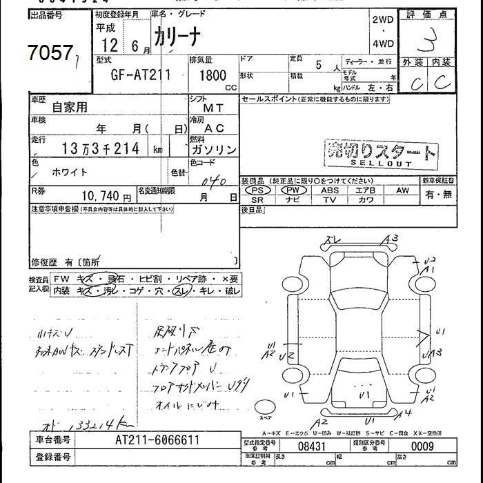 TOYOTA CARINA - лот 7057