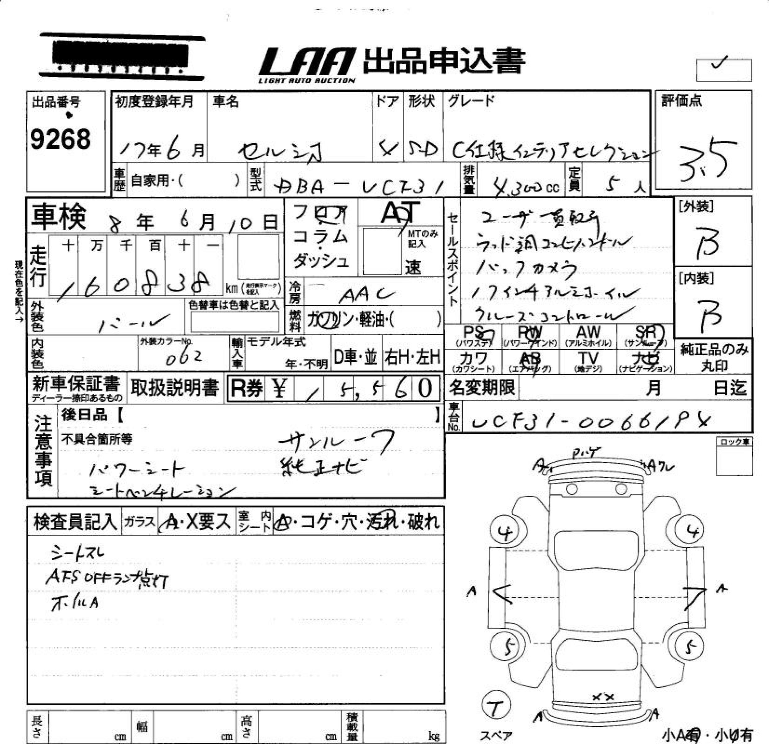 TOYOTA CELSIOR C SPECIFICATION INTERIOR SELECTION - лот 9268