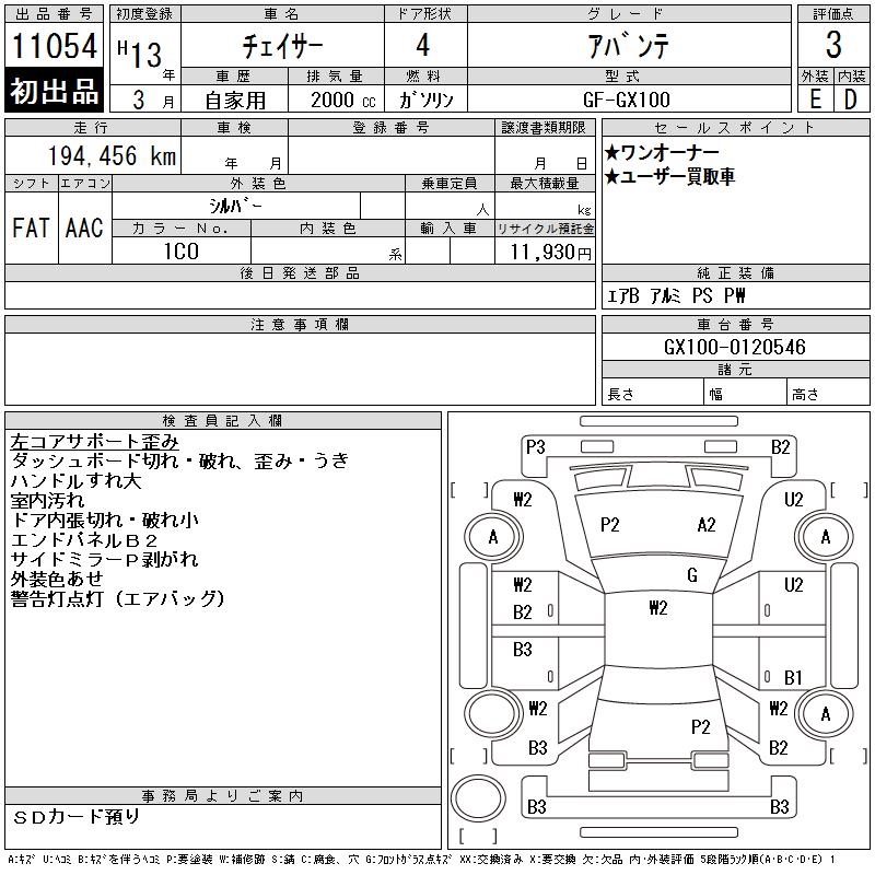 TOYOTA CHASER - лот 11054