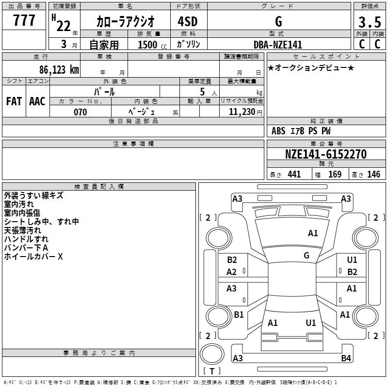 TOYOTA COROLLA AXIO - лот 777