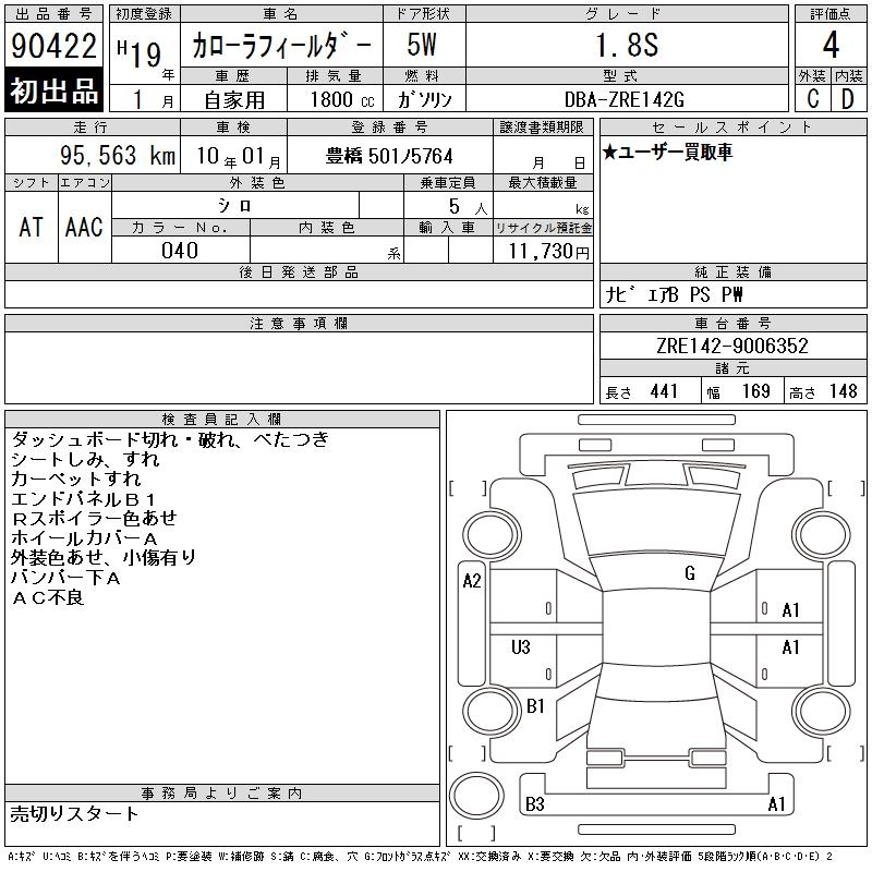 TOYOTA COROLLA FIELDER - лот 90422