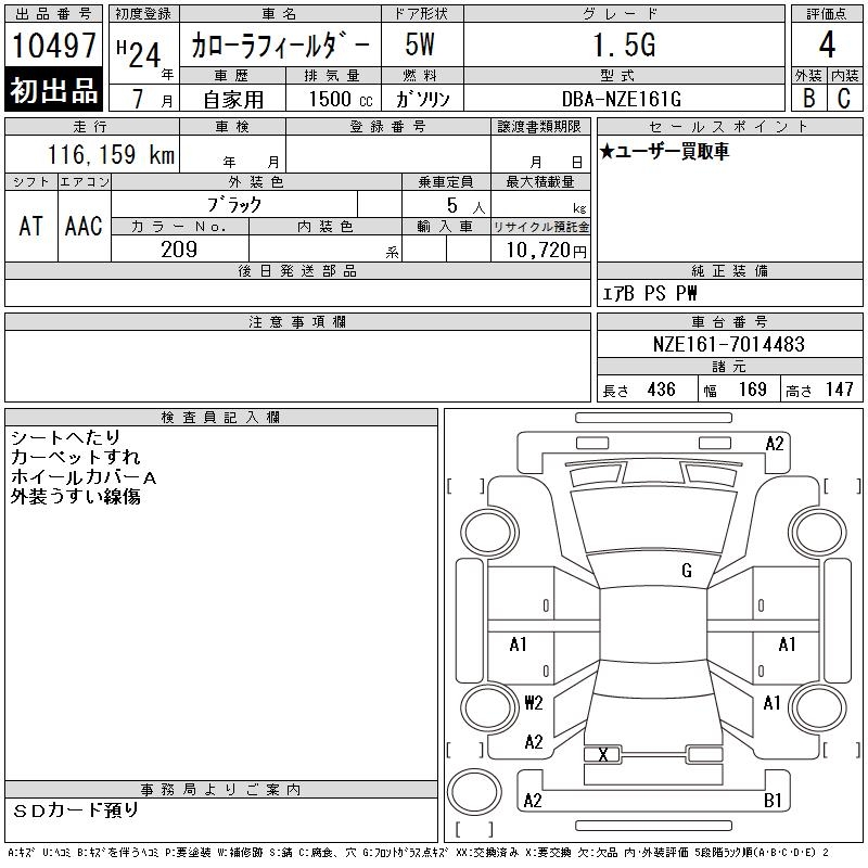 TOYOTA COROLLA FIELDER - лот 10497