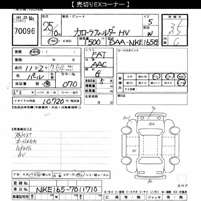 TOYOTA COROLLA FIELDER - лот 70096