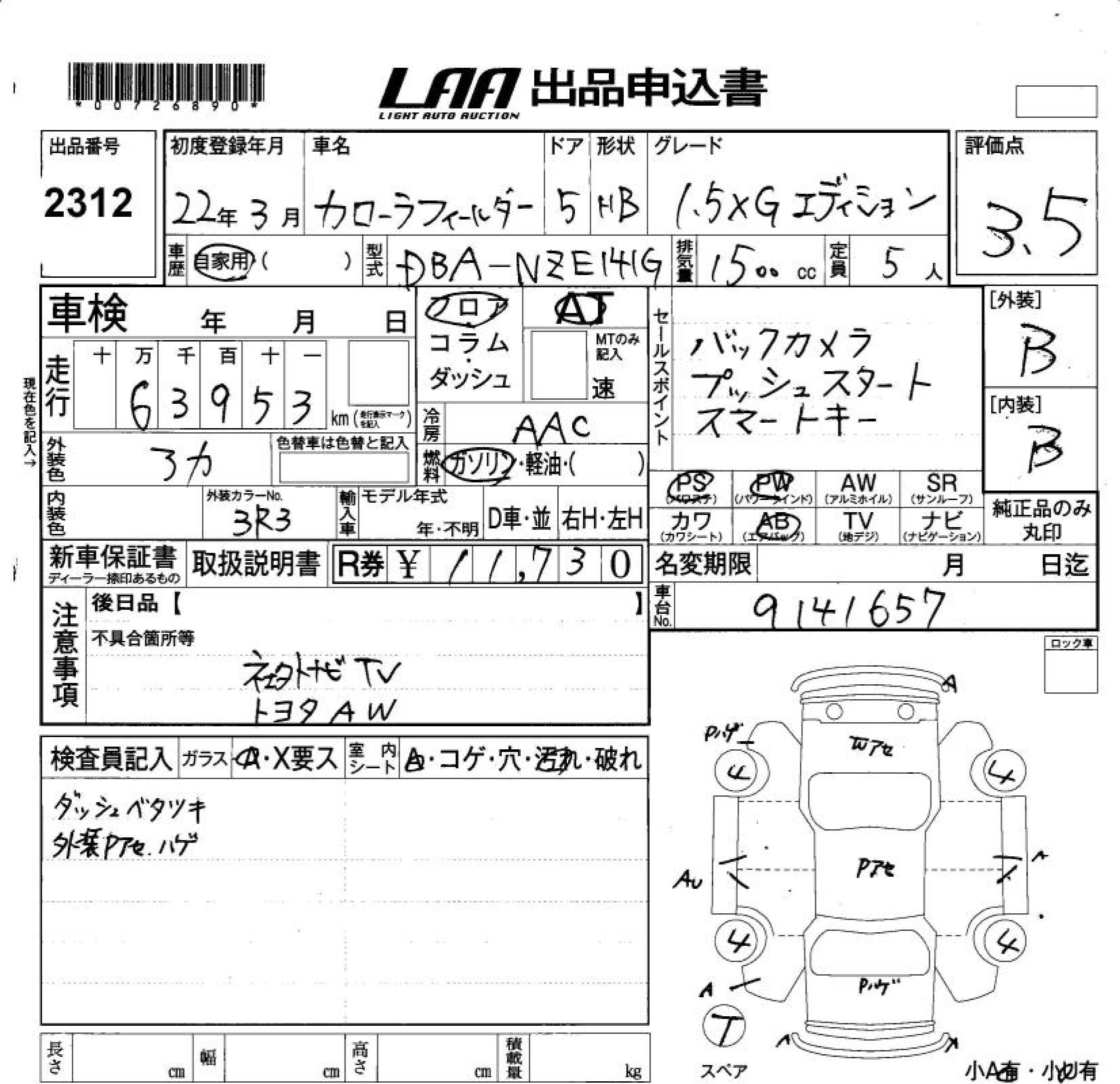TOYOTA COROLLA FIELDER - лот 2312