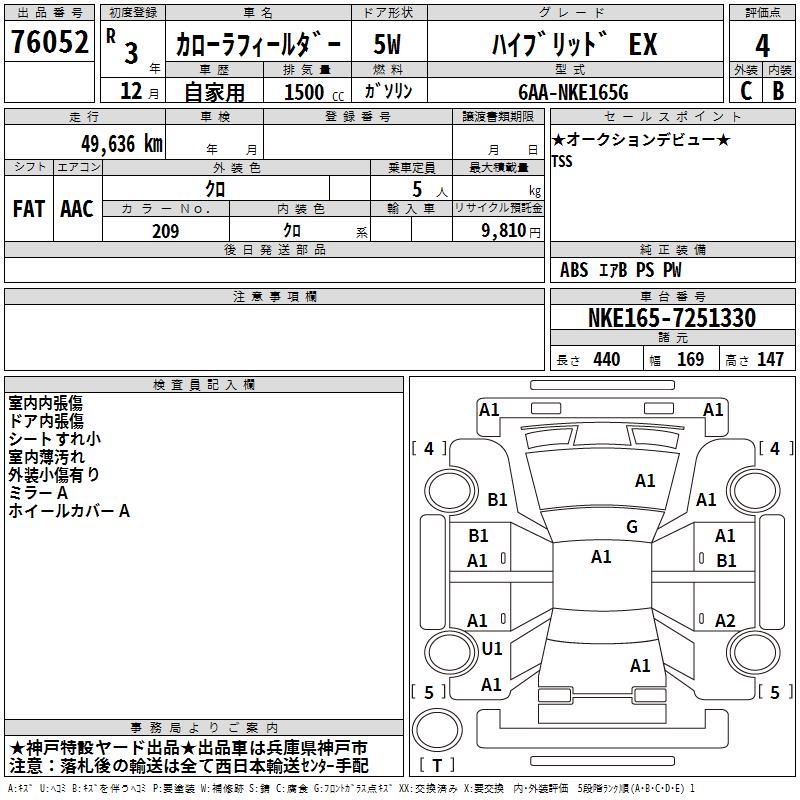 TOYOTA COROLLA FIELDER - лот 76052