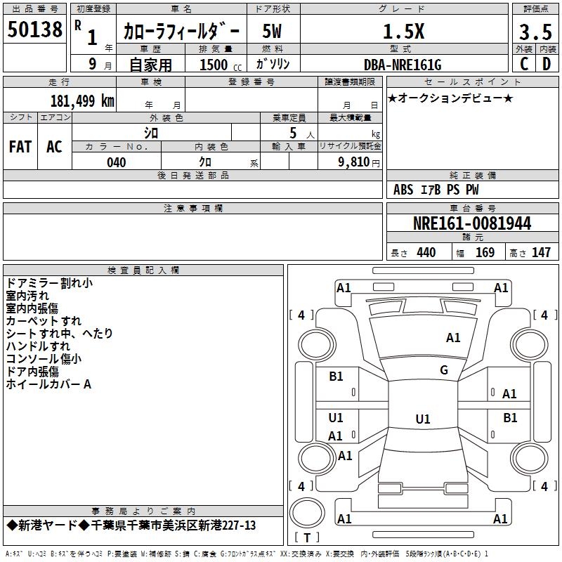 TOYOTA COROLLA FIELDER - лот 50138