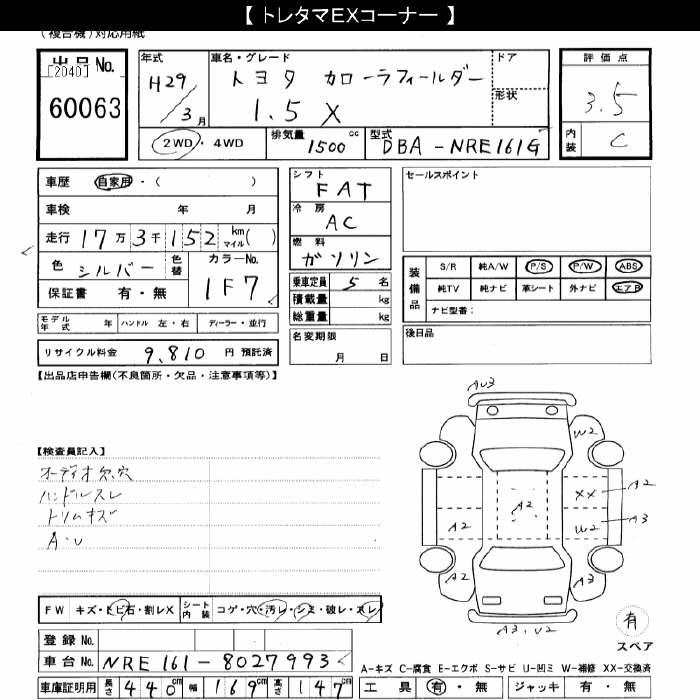 TOYOTA COROLLA FIELDER - лот 60063
