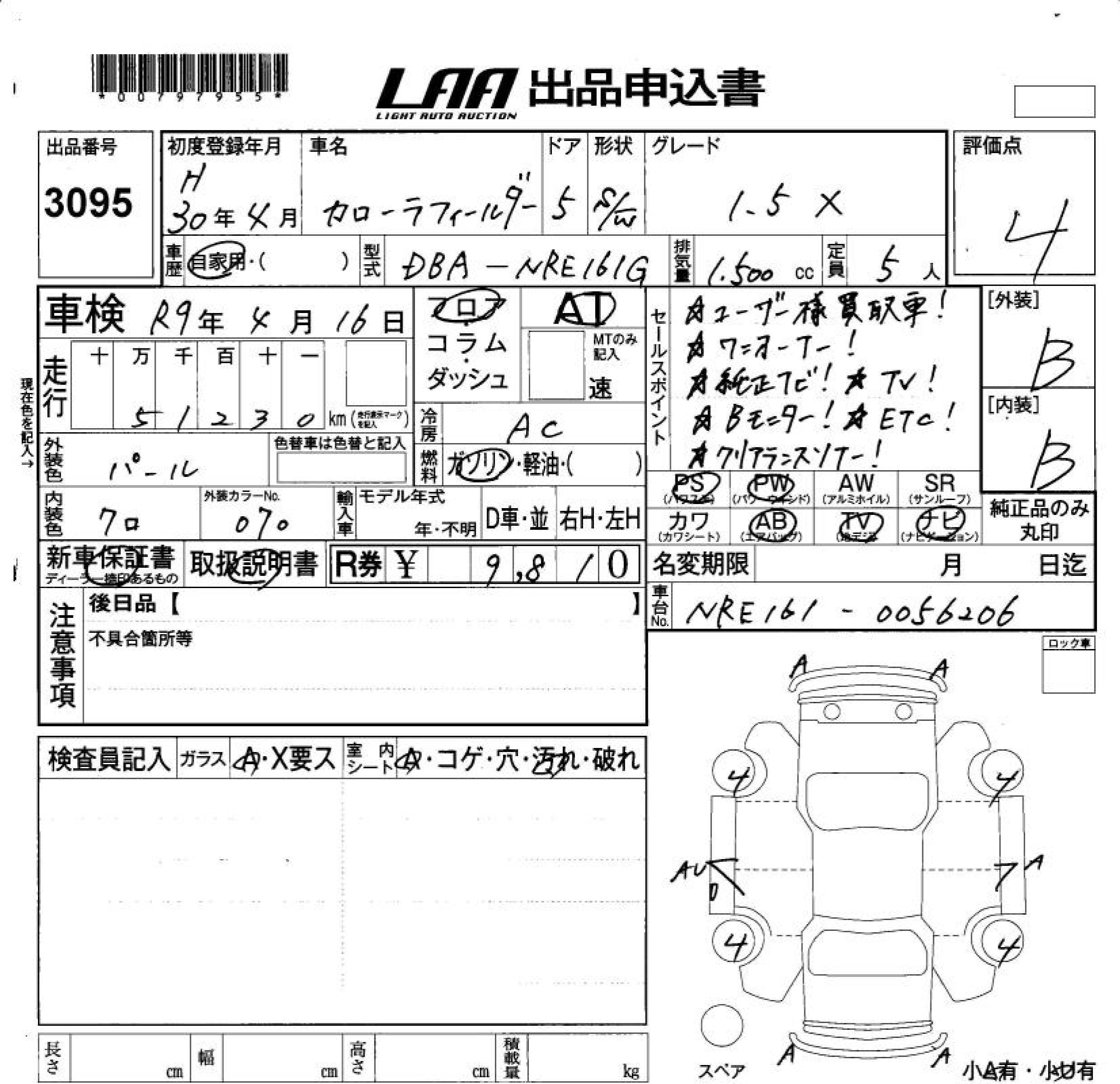 TOYOTA COROLLA FIELDER - лот 3095