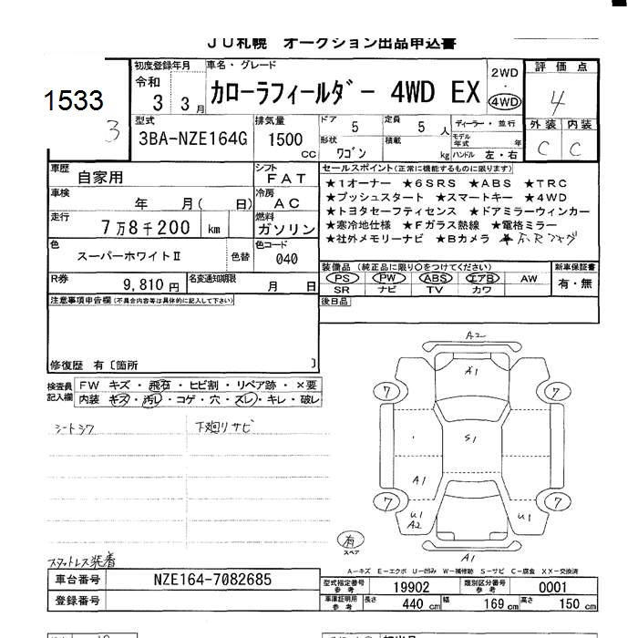 TOYOTA COROLLA FIELDER - лот 1533