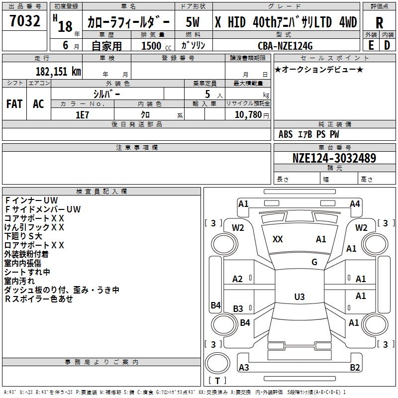 TOYOTA COROLLA FIELDER - лот 7032
