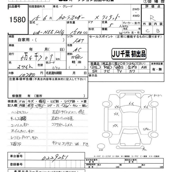 TOYOTA COROLLA FIELDER - лот 1580