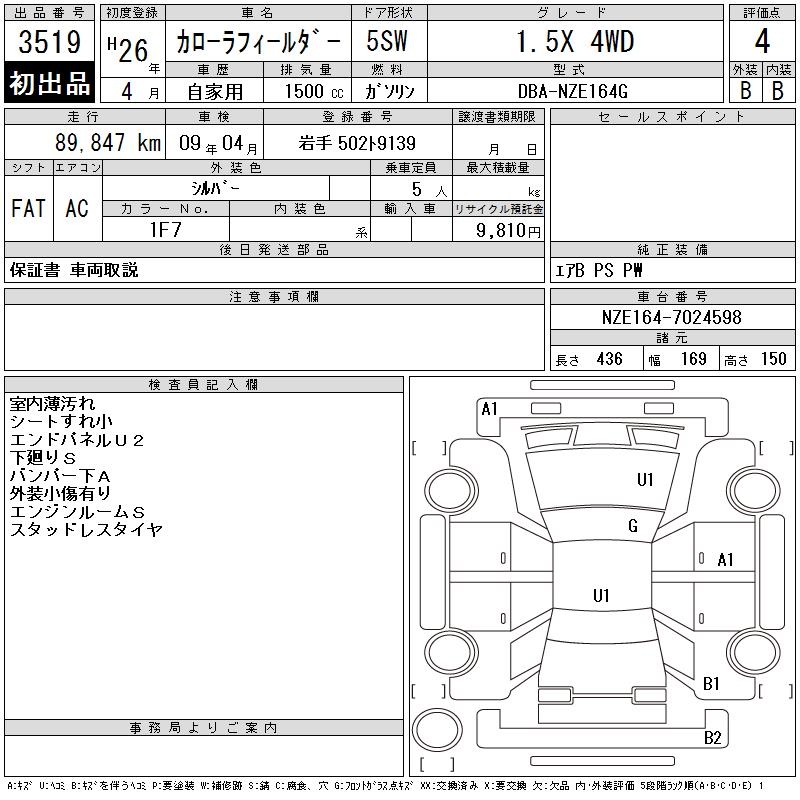 TOYOTA COROLLA FIELDER - лот 3519