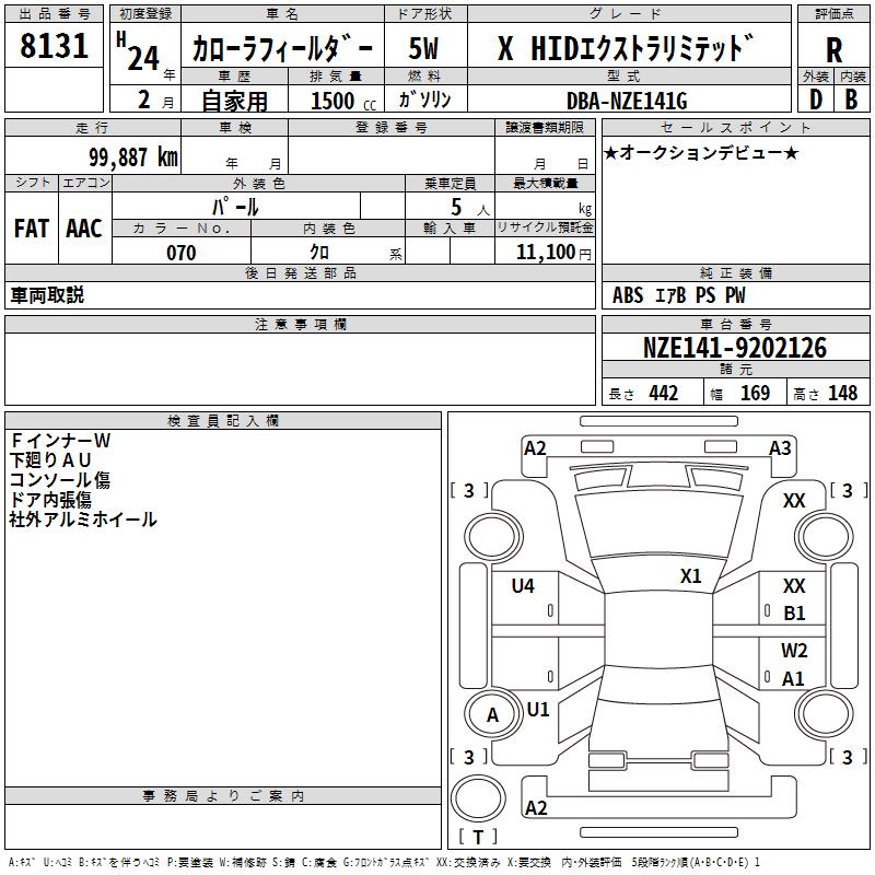 TOYOTA COROLLA FIELDER - лот 8131