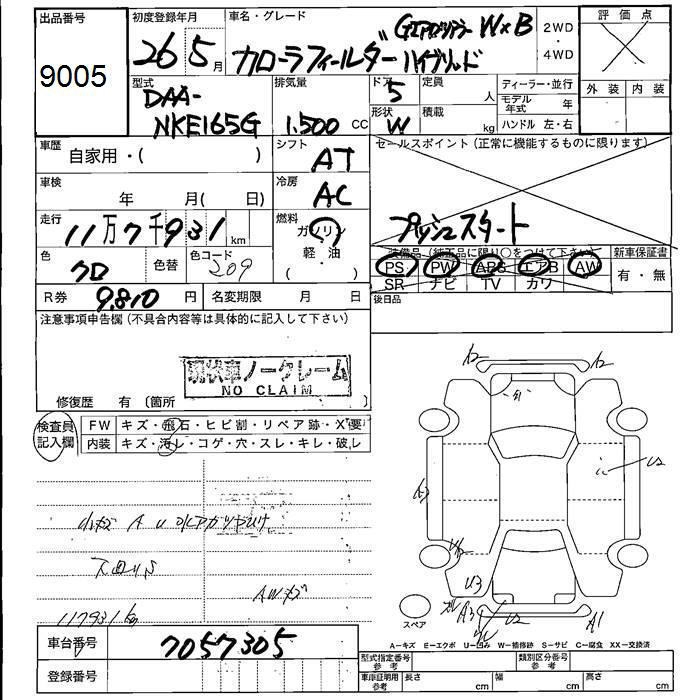 TOYOTA COROLLA FIELDER - лот 9005