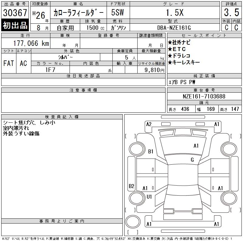 TOYOTA COROLLA FIELDER - лот 30367