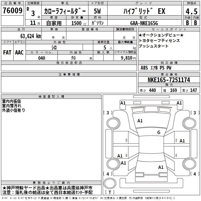 TOYOTA COROLLA FIELDER - лот 76009
