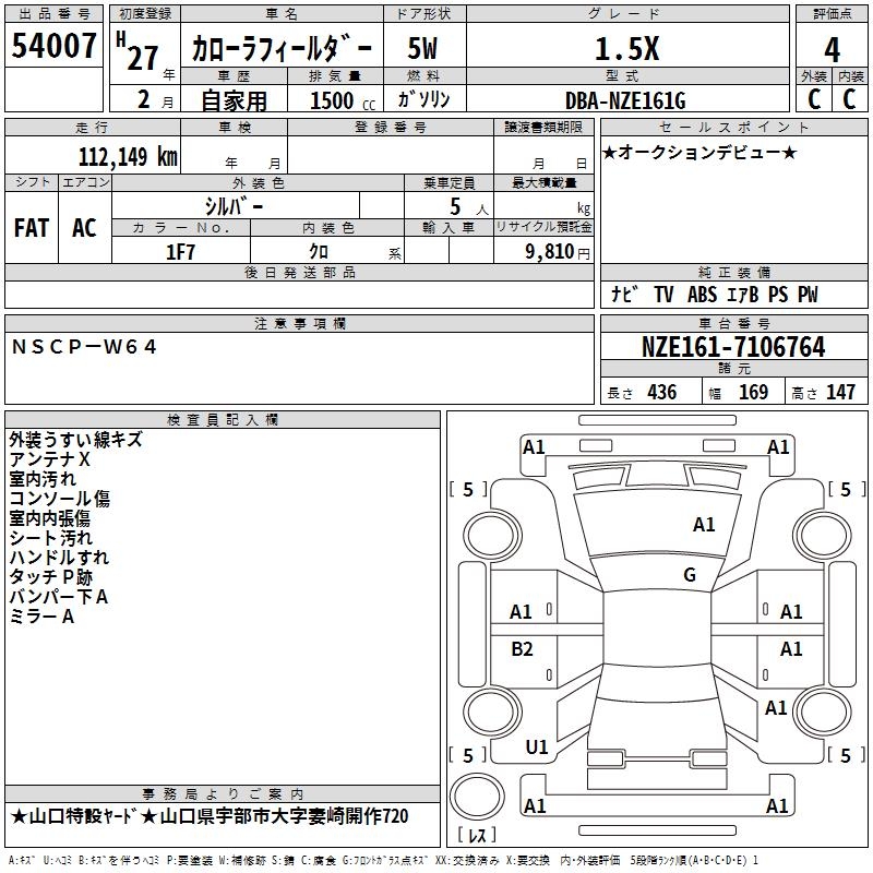 TOYOTA COROLLA FIELDER - лот 54007