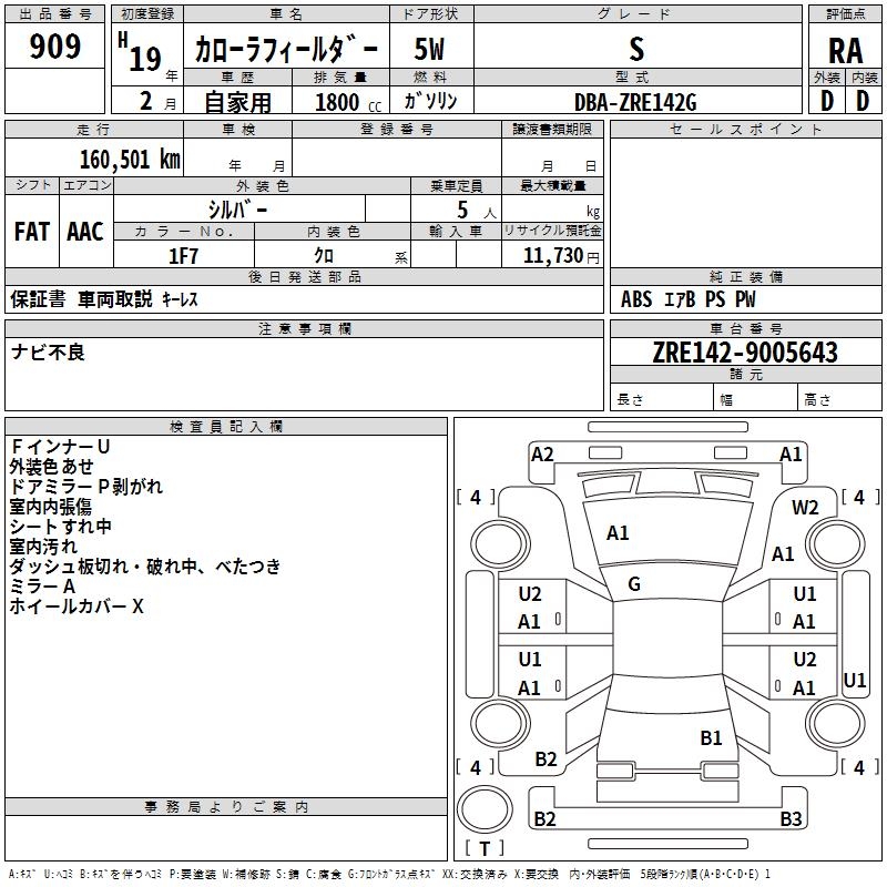 TOYOTA COROLLA FIELDER - лот 909