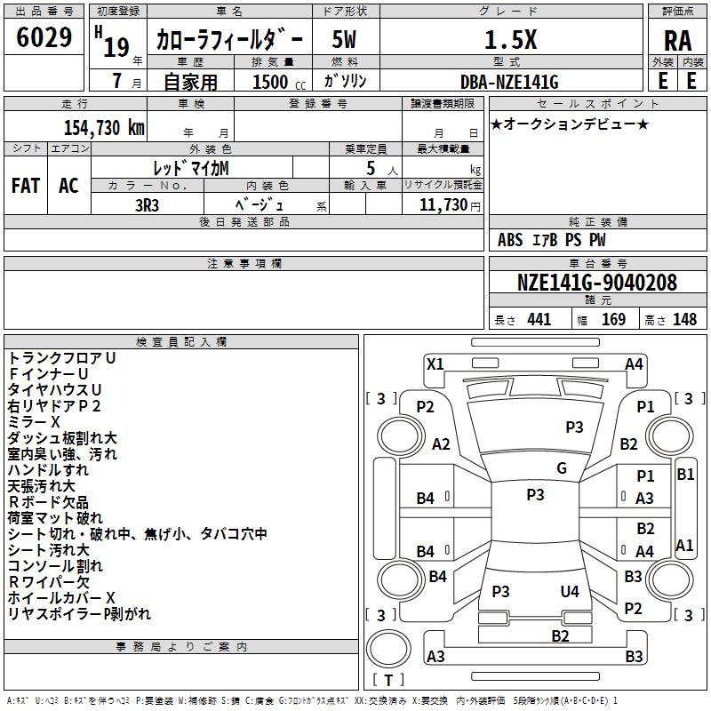 TOYOTA COROLLA FIELDER - лот 6029