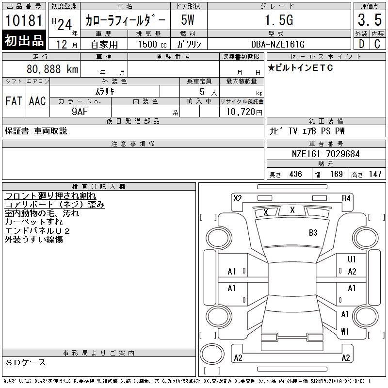 TOYOTA COROLLA FIELDER - лот 10181