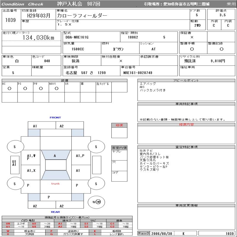 TOYOTA COROLLA FIELDER - лот 1039