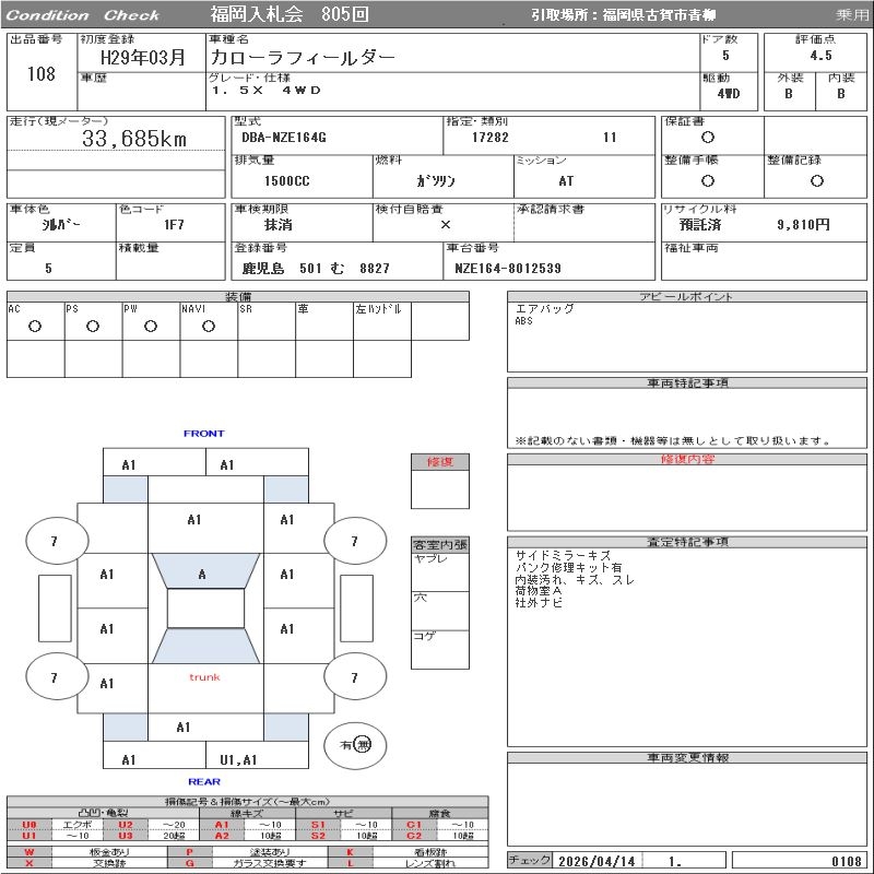 TOYOTA COROLLA FIELDER - лот 108