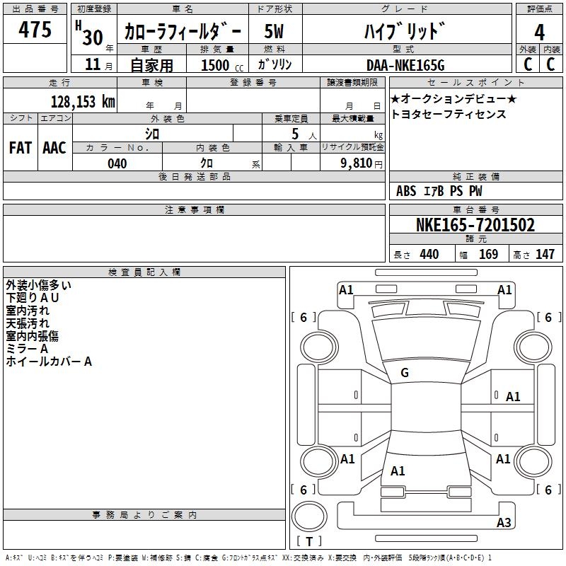TOYOTA COROLLA FIELDER - лот 475
