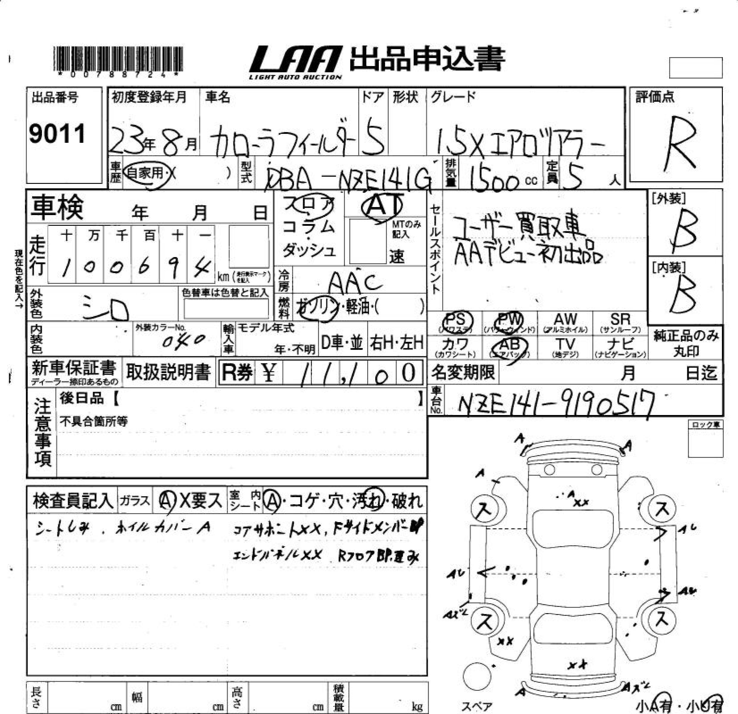 TOYOTA COROLLA FIELDER - лот 9011
