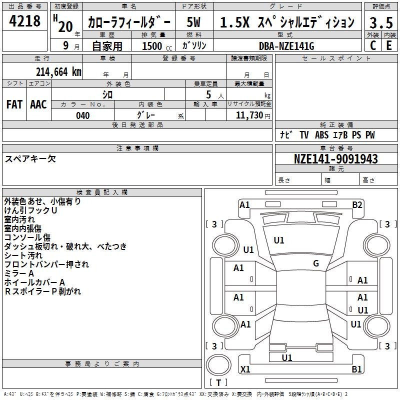 TOYOTA COROLLA FIELDER - лот 4218