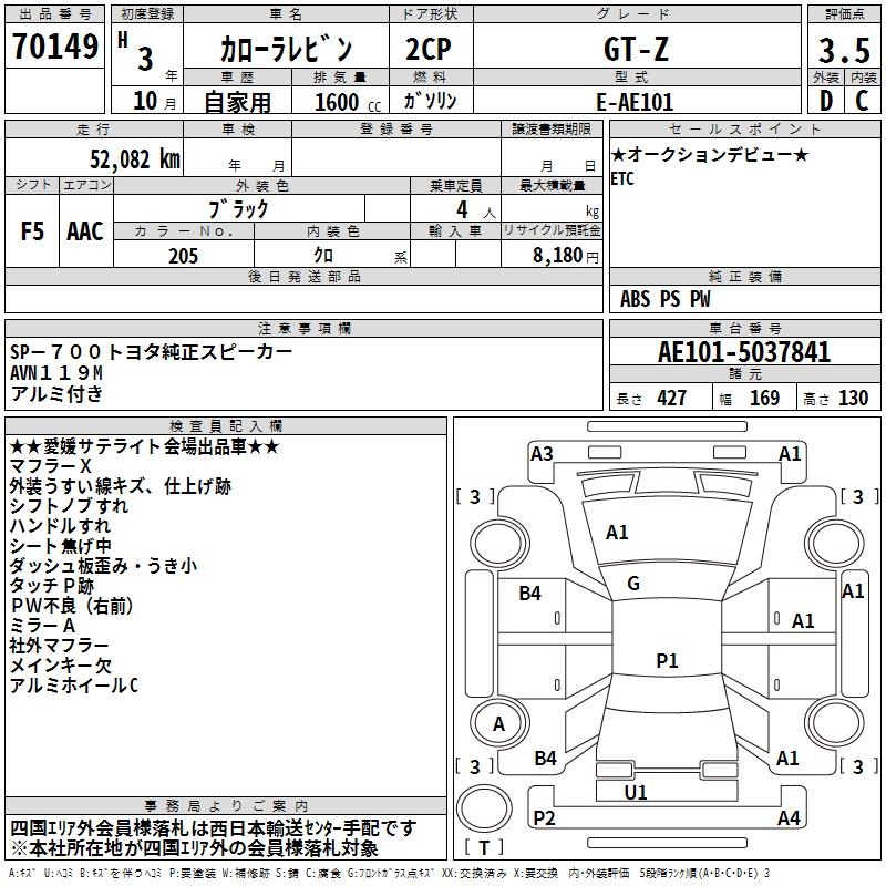 TOYOTA COROLLA LEVIN - лот 70149