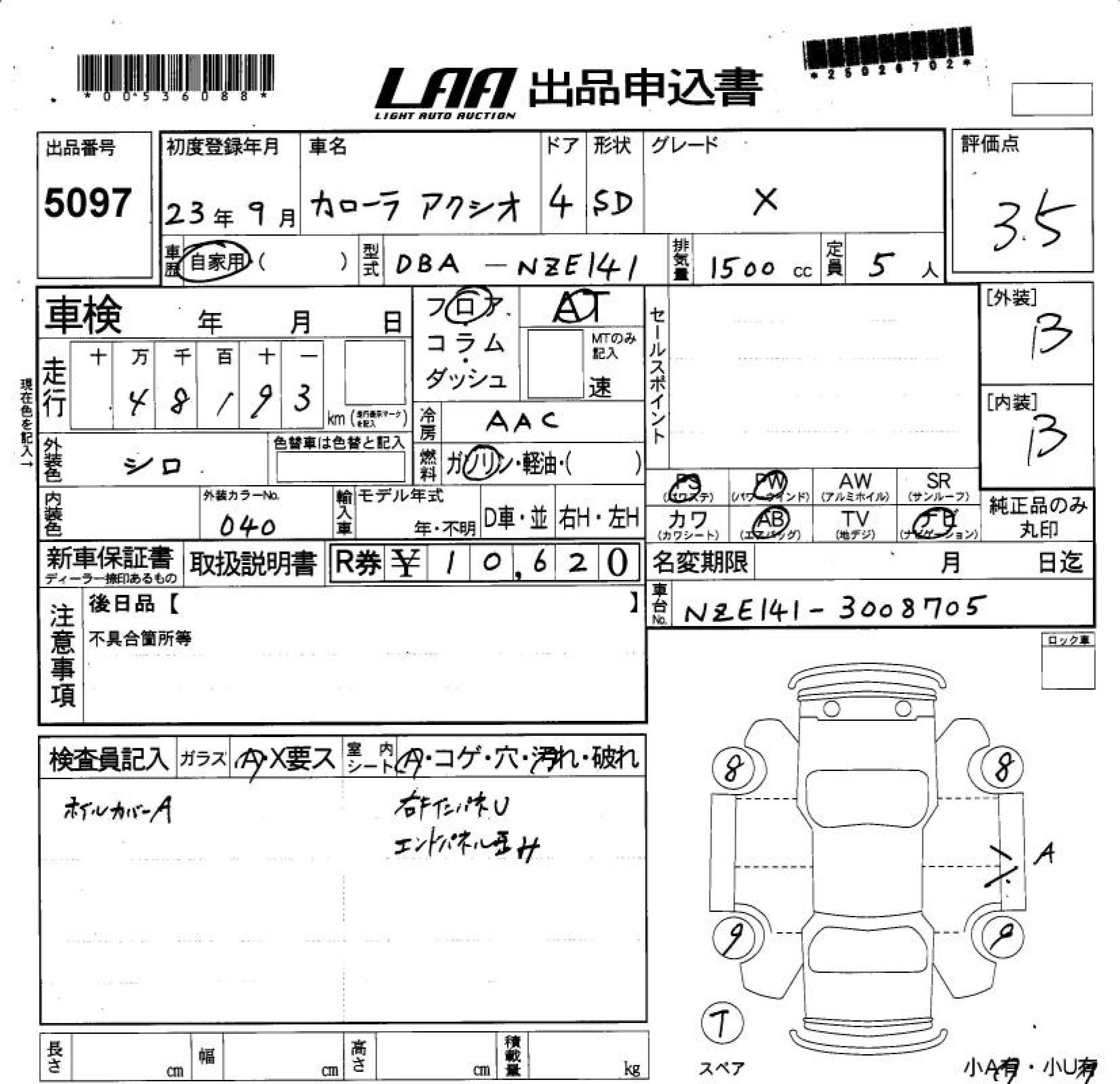 TOYOTA COROLLA AXIO X - лот 5097