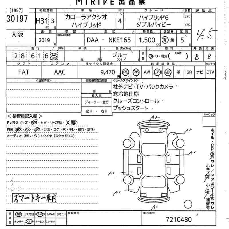 TOYOTA COROLLA AXIO HYBRID G DOUBLE BAI BE - лот 30197