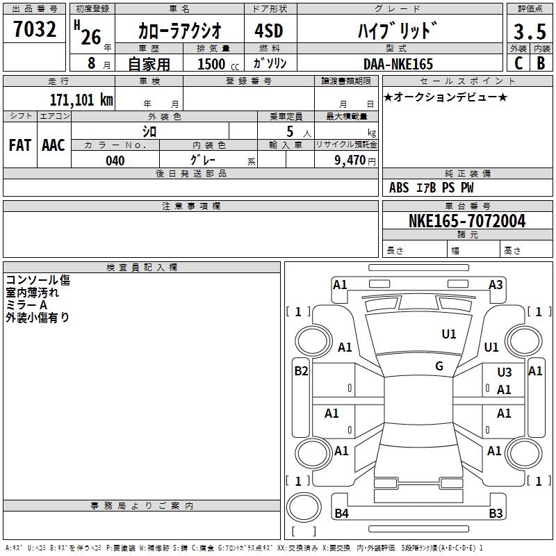 TOYOTA COROLLA AXIO HYBRID - лот 7032