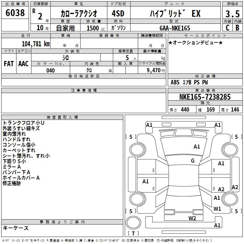 TOYOTA COROLLA AXIO HYBRID EX - лот 6038