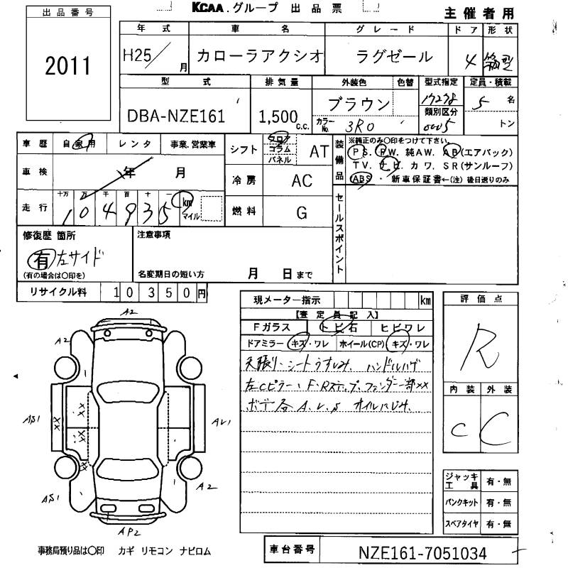 TOYOTA COROLLA AXIO LUXEL - лот 2011