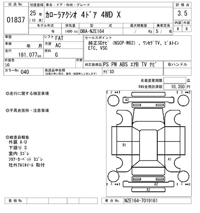 TOYOTA COROLLA AXIO - лот 1837