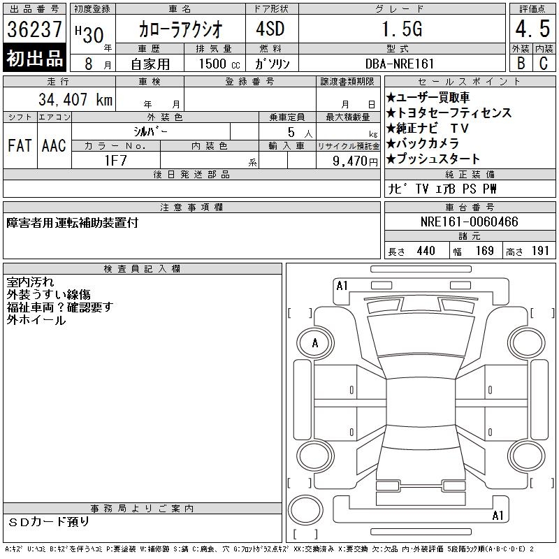 TOYOTA COROLLA AXIO - лот 36237