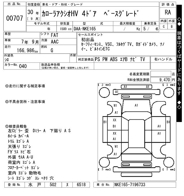 TOYOTA COROLLA AXIO - лот 707