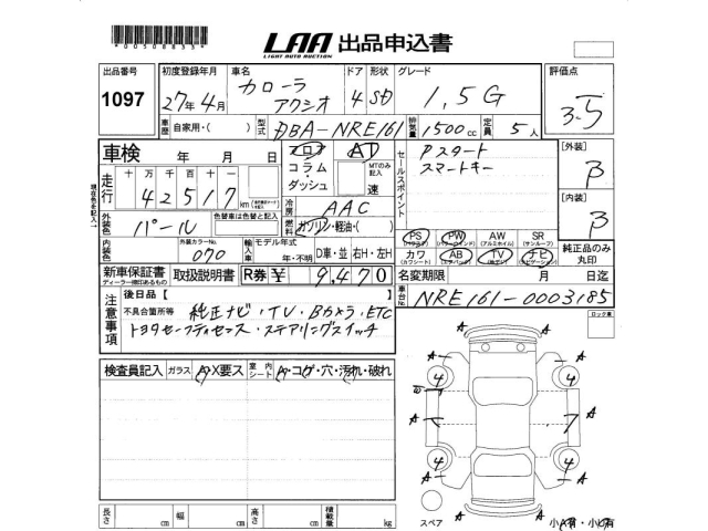 TOYOTA COROLLA AXIO - лот 1097