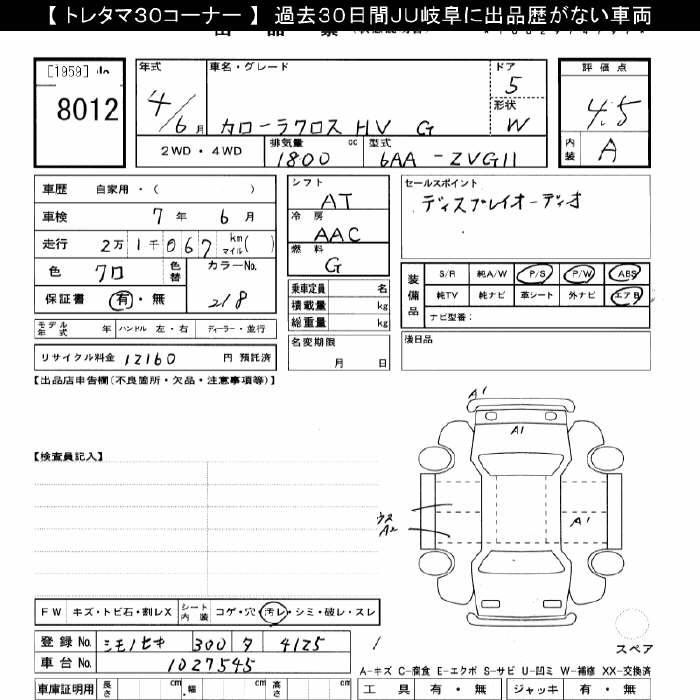 TOYOTA COROLLA CROSS hybrid G - лот 8012